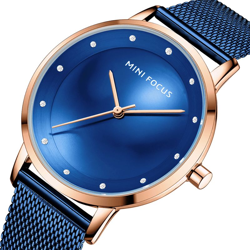 Mini Focus Mf0332L Mote Dameklokke Diamantskive Vanntett Rustfritt Stål Mesh Beltestropp Enkel Lady Quartz Watch