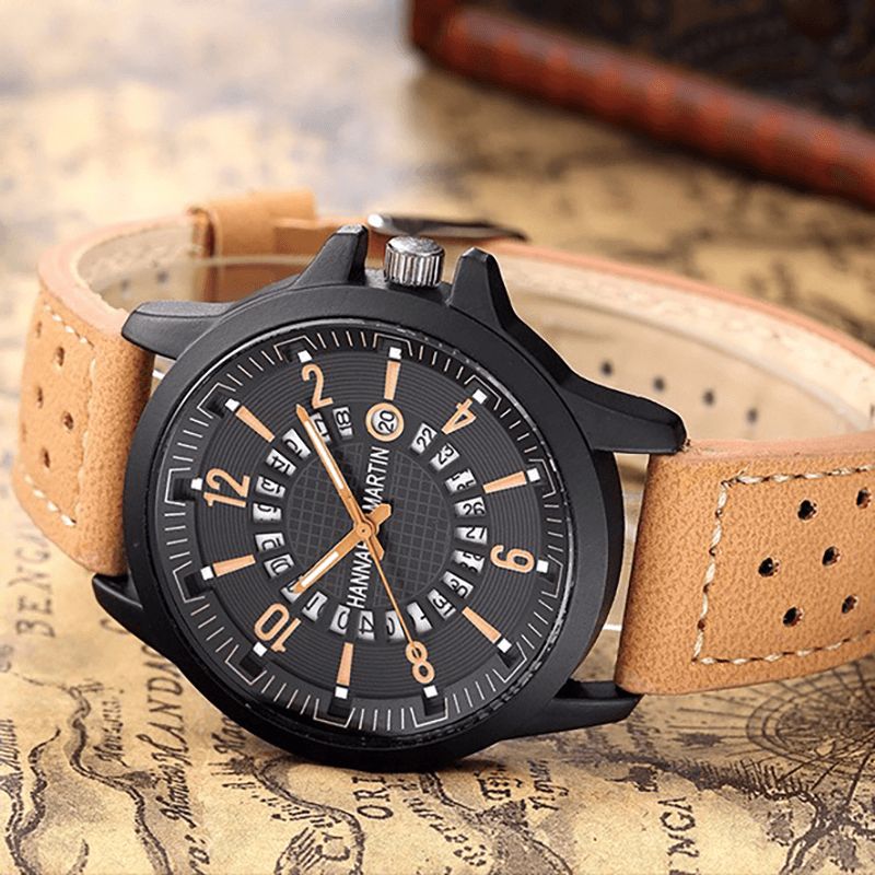 Mote Årsak Creative Dato Vis Vanntett Lærreim Menn Kvartsklokke