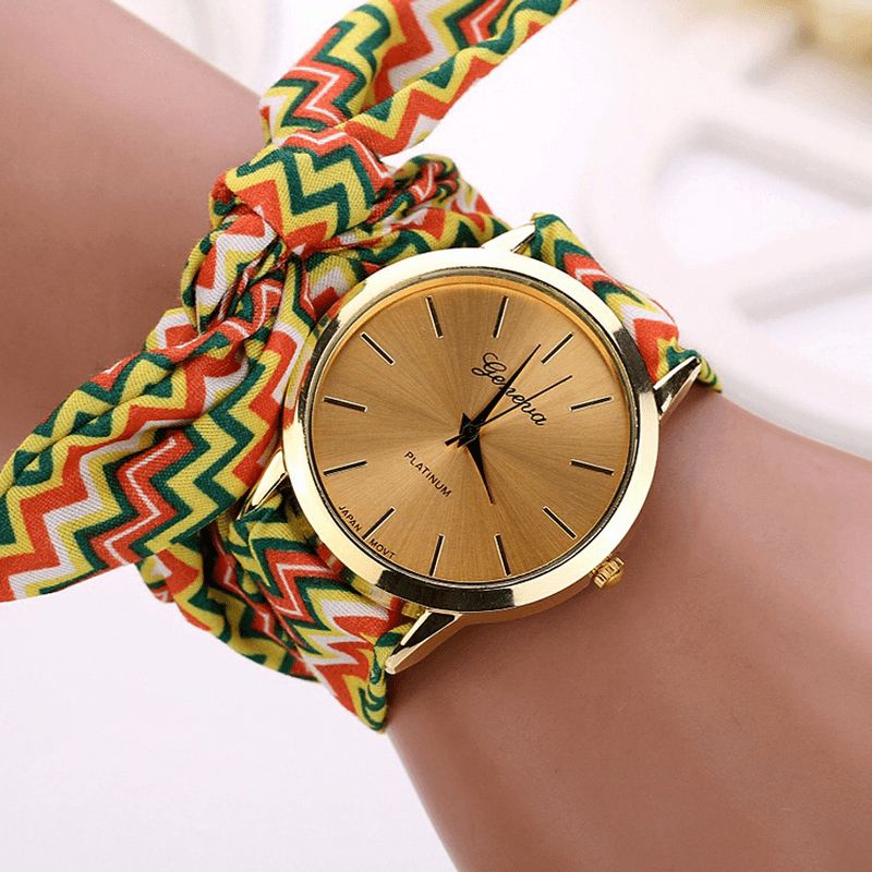 Mote Elegant Big Dial Striped Cloth Strap Dame Kvartsklokke Armbåndsur