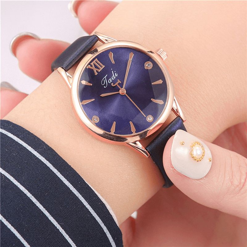 Mote Elegante Dameklokker Skinnbånd Geometrisk Design Romertall Kvartsklokke
