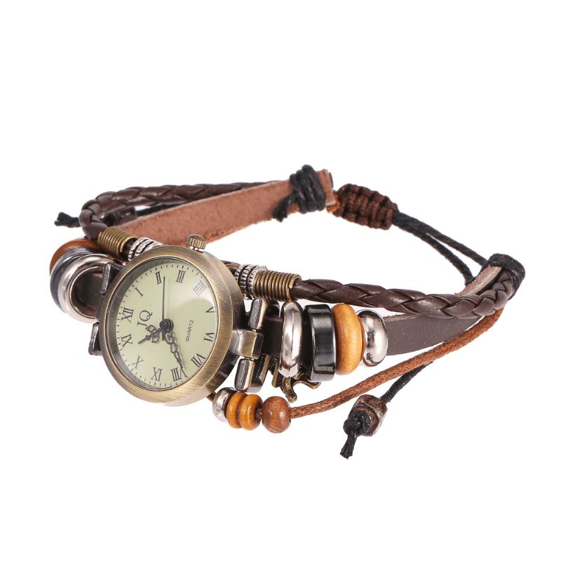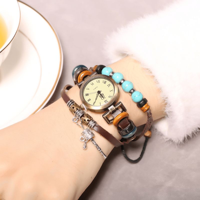 Deffrun Retro Style Dame Armbånd Watch Beads Eiffel Tower Pendant Quartz Watch