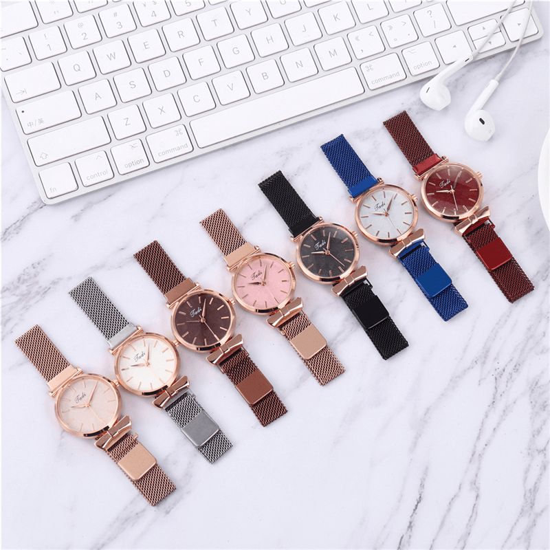 Mote Uformell Elegant Design Dame Klokker Alloy Mesh Band Dial Wrist Case Kvartsklokke