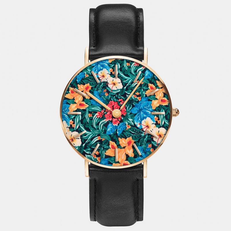 Ultratynt Oljemaleri Kvinner Uformell Elegant Armbåndsur Blomsterbladkvartsklokke