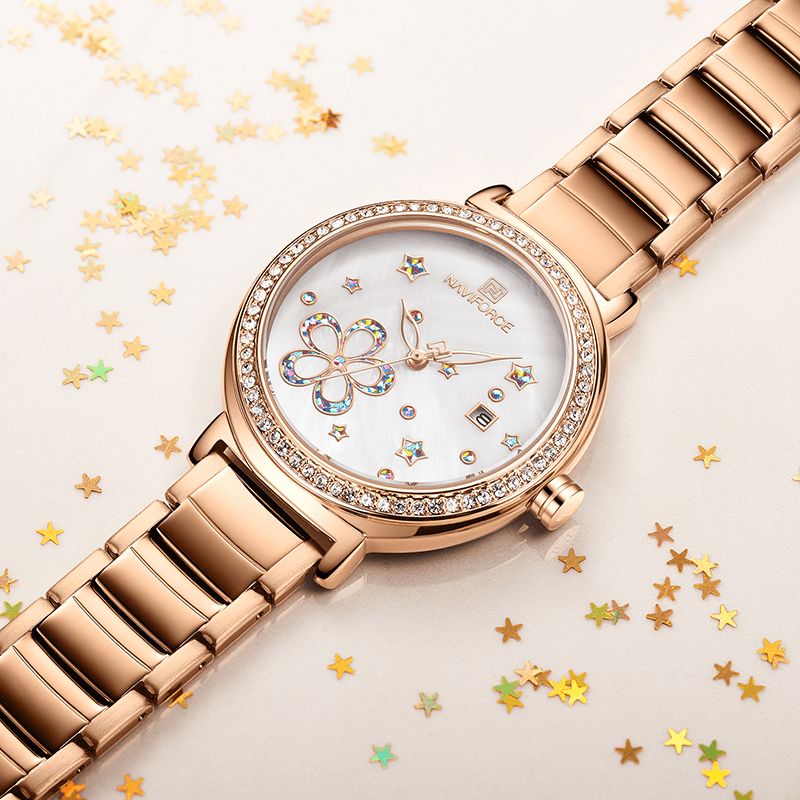 Naviforce 5016 Dato Display Full Steel Damearmbåndsur Crystal Classic Design Kvartsklokke