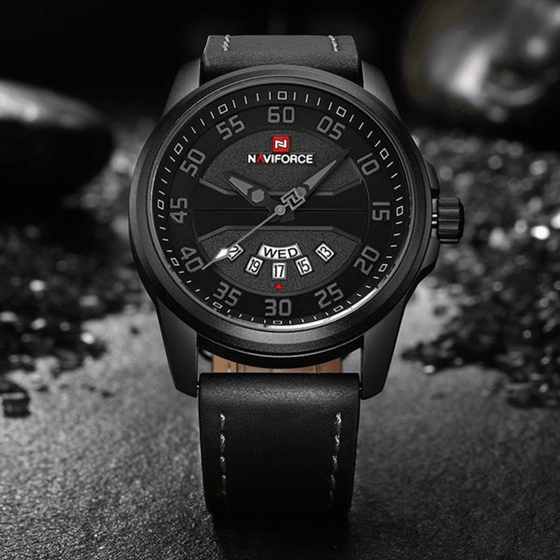 Naviforce Nf9124 Herreklokke Lærreim Enkel Urskive Kvarts-Armbåndsur For Menn