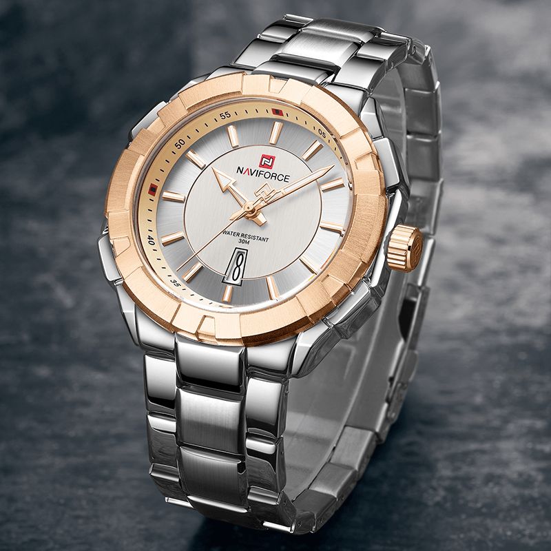 Naviforce Nf9176 Vanntett Fasjonabelt Armbåndsur For Menn I Full Stål Forretningsstil Kvartsklokke