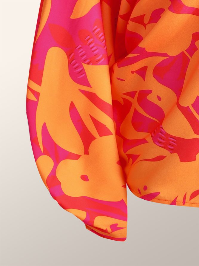 Orange Daily Floral Elegant Lantern Sleeve Loose Top