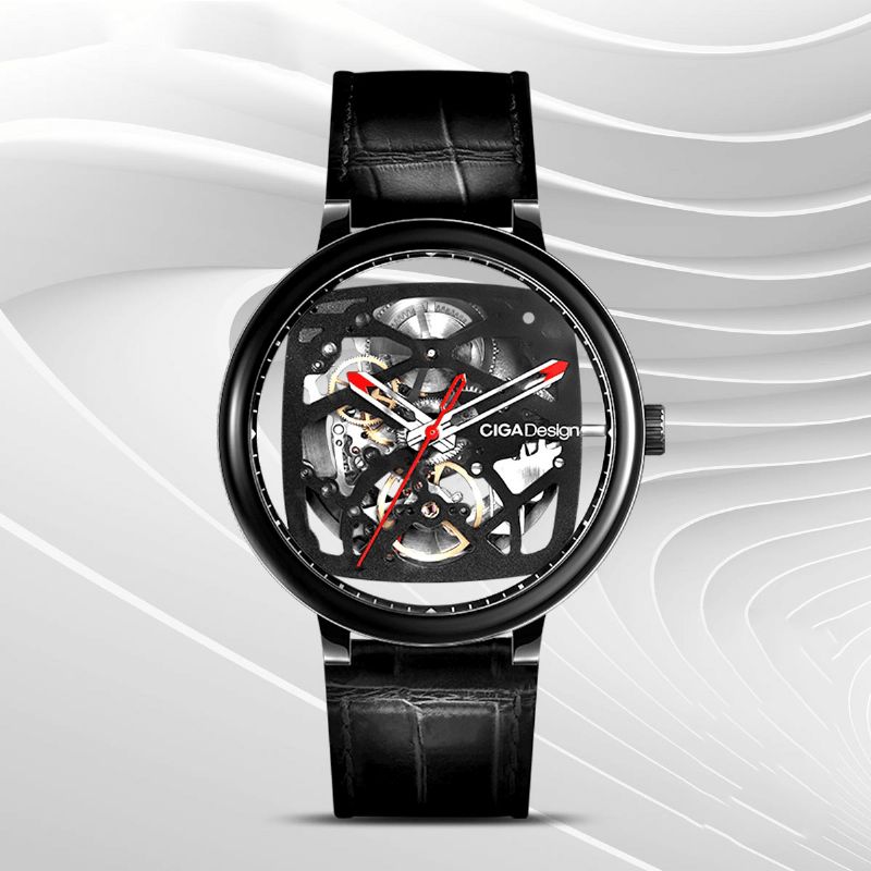 Original Ciga Design Fashion Business Full Hollow Design 3Atm Vanntett Lærreim Automatisk Mekanisk Klokke For Menn Fra Xiaomi Eco-System