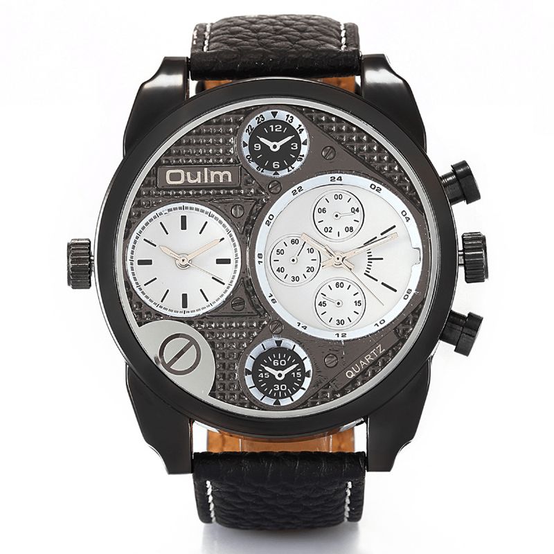 Oulm 9316 Vintage Mote Herreklokke Stor Urskive Dobbel Tidssone Vanntett Skinnbånd Kvartsklokke