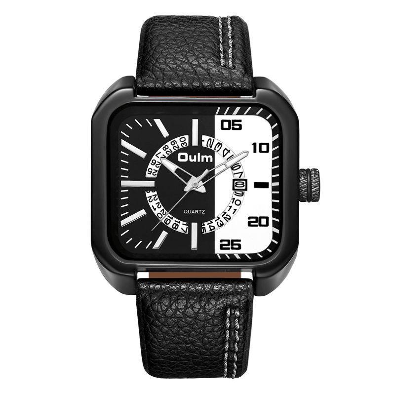 Oulm Square Med Kalenderskive Pu Lærreim 3Atm Vanntett Kvartsklokke For Menn