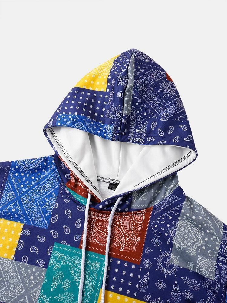 Paisley Print Colorblock Kangaroo Pocket Hettegensere For Menn