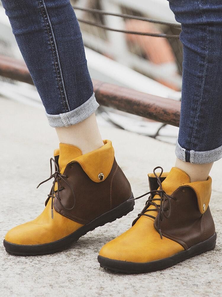 Pluss Størrelse Kvinner Som Skjøter Snøre Flate Korte Støvler