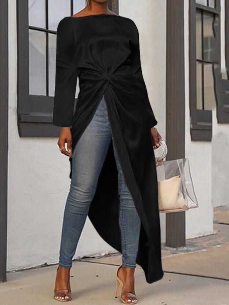 Pure Color Rund Hals Langermet Skjorter Høy Lav Hem