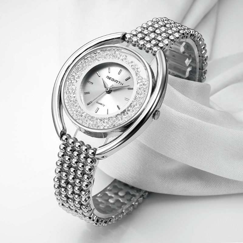 Rebirth Re079 Mote Kvinner Kvarts Klokke Dame Luksus Diamond Steel Strap Armbånd Watch