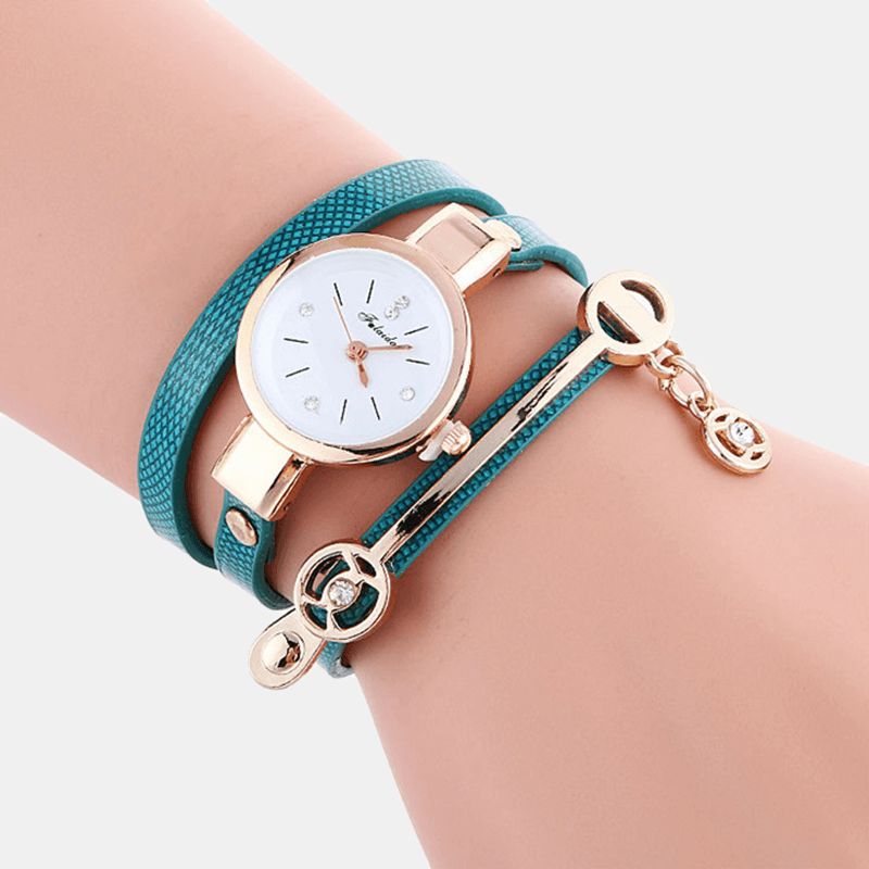 Retro Pu-Rem Rhinestone Flerlags Klokke Metallanheng Justerbar Klassisk Dame Kvartsklokke