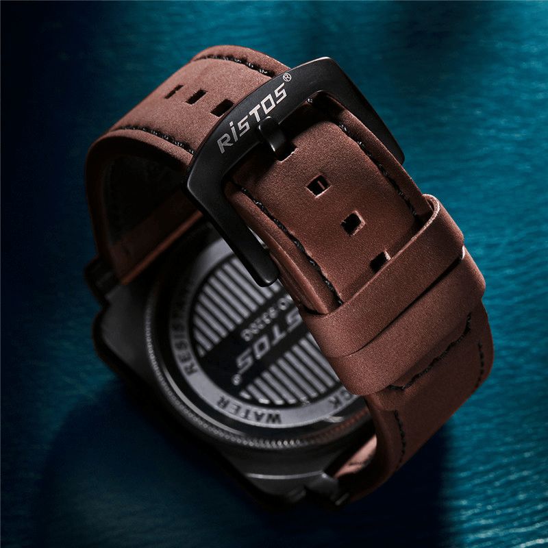 Ristos 9320 Business Casual Lærreim Dato Uke Lysende Tid Visning Herre Armbåndsur Kvartsklokker