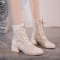 Rund Tå Tykk Hæl Damestøvler Med Blondegitter Foran