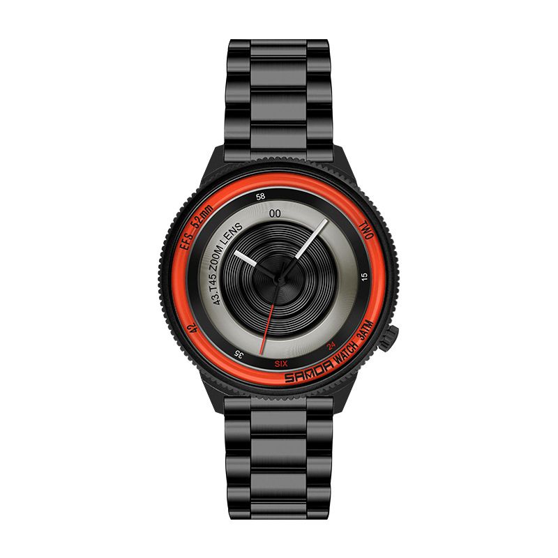 Sanda 1041 Uformell Mote Menn Kreativ Kameraskive Vanntett Rustfritt Stålreim Kvartsklokke
