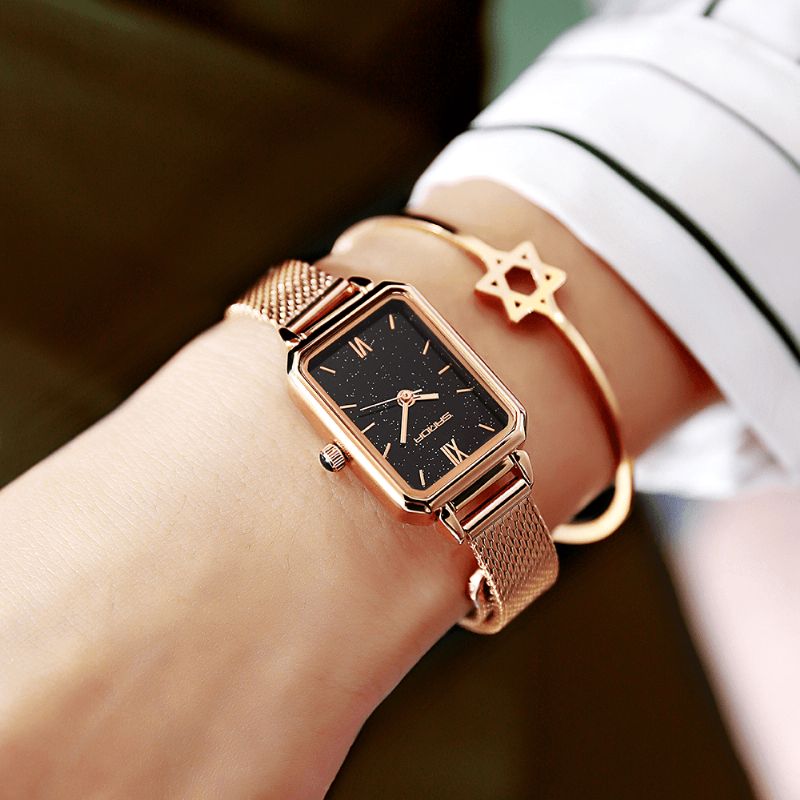 Sanda P1049 Grønn Gradientskive Svart Stjernehimmel Mesh Lærreim Mote Damekjole Kvartsklokke