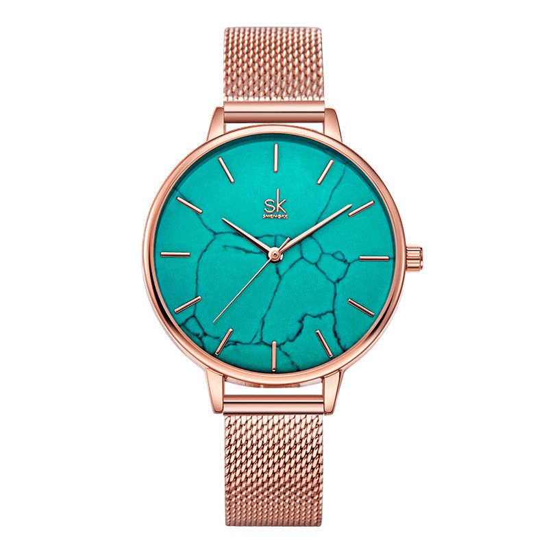 Shengke Sk K0137 Fashion Marble Texture Urskive Dameklokke Damekjole Kvartsklokke