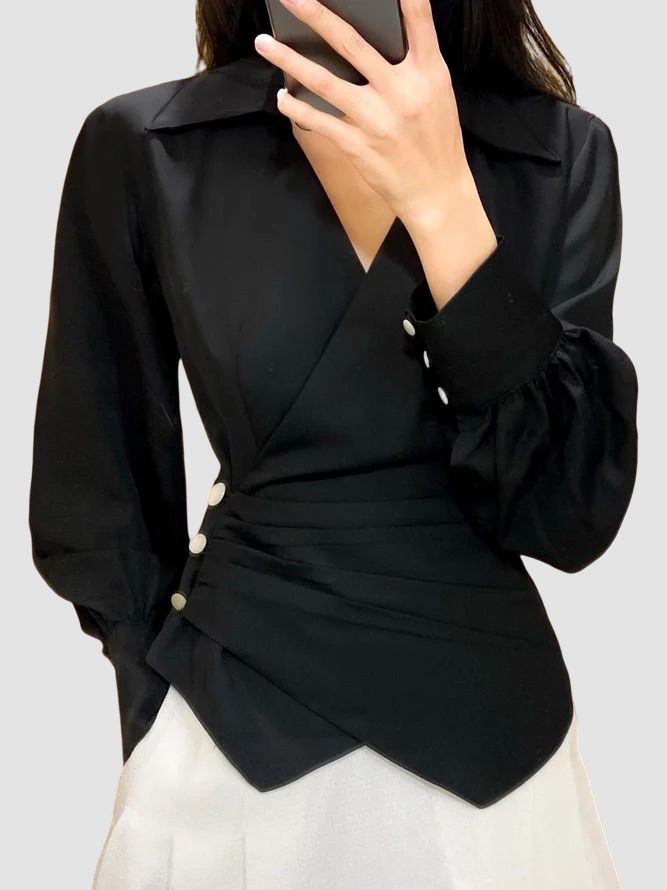 Skjortekrage Ensfarget Elegant Langermet Daglig Bluse
