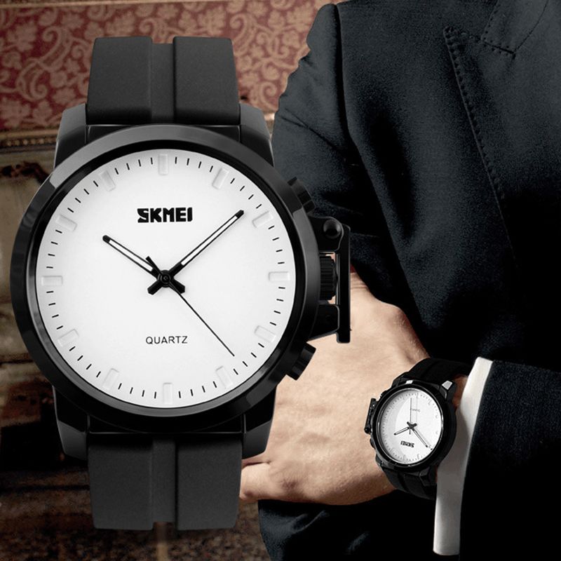 Skmei 1208 Business Style, Enkel Stor Urskive, Vanntett Silikonrem, Kvartsklokke