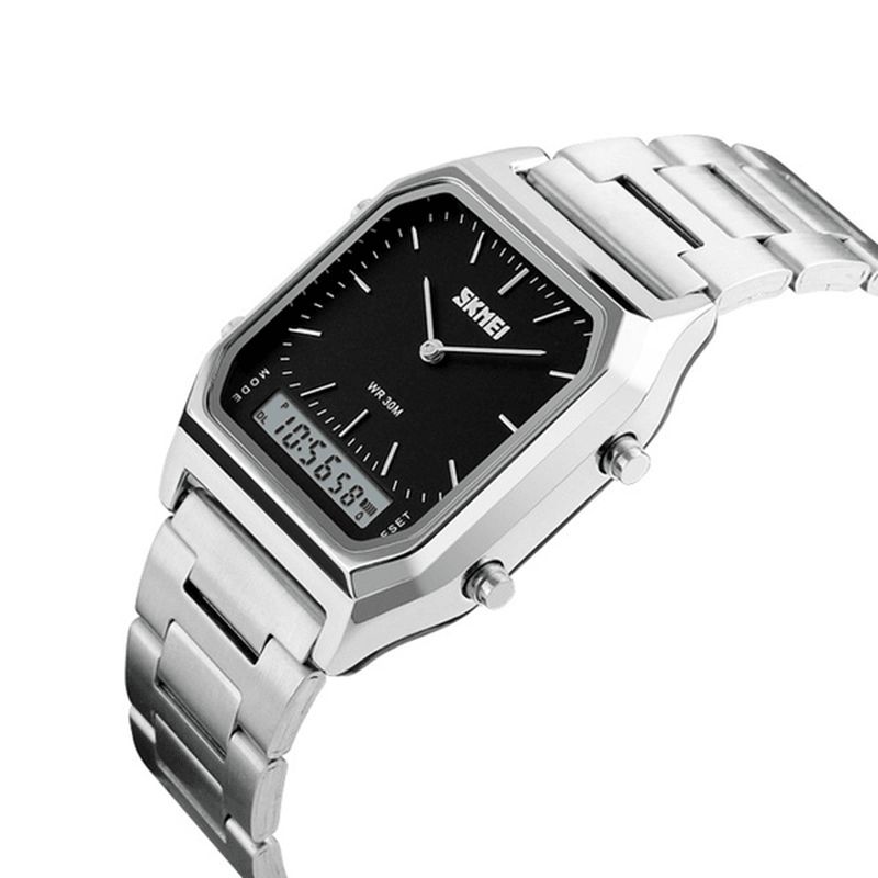 Skmei 1220 Alloy Case 30M Vanntett Lysende Business Klassisk Quartz Digital Dual Display Watch