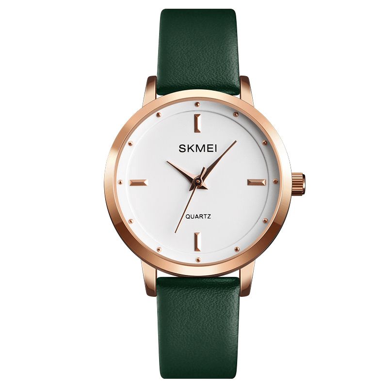 Skmei 1457 Kvinner Mote Enkel Urskive Rose Gold Case Leather Strap Kvartsklokke