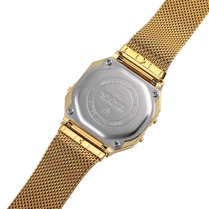 Skmei 1660 Fashion Stoppeklokke Lysende Display Menn Vanntett Watch Mesh Strap Digital Watch