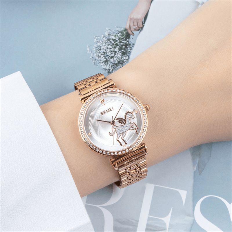 Skmei 1686 Elegant Dameklokke Mote Uformell Stålreim Vanntett Kvinne Kvarts Klokke