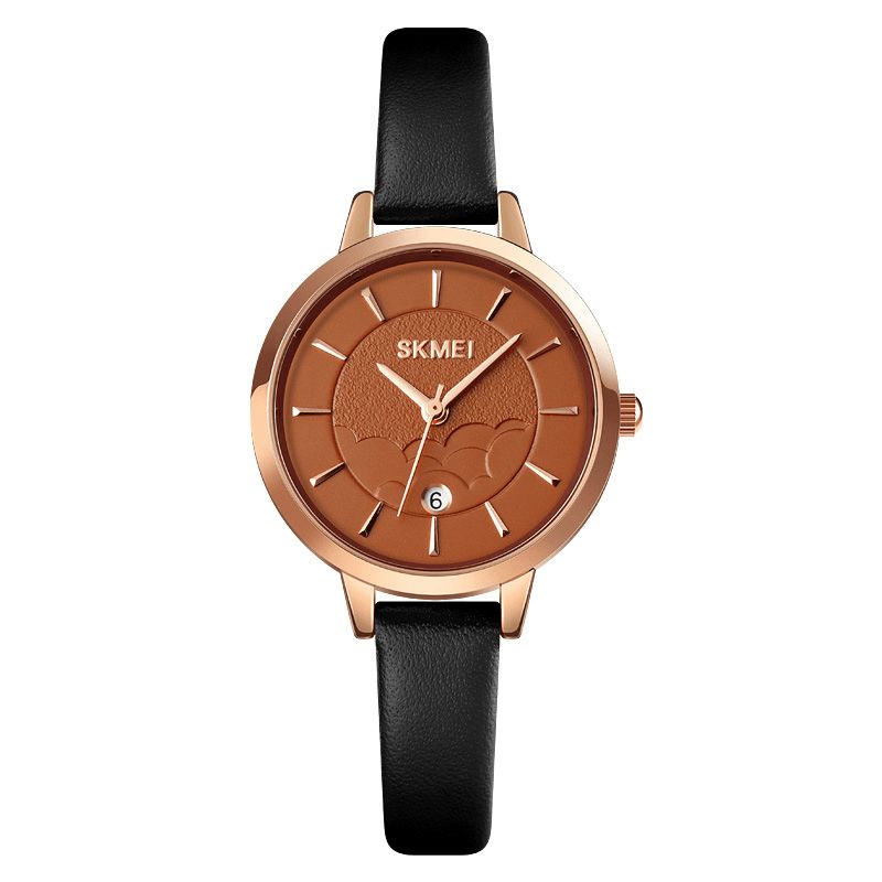 Skmei 1705 Enkel Dameklokke Kreativ Urskive Datovisning Lærreim Mote Dame Kvartsklokke