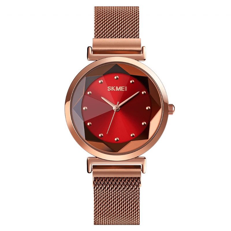 Skmei 1709 Fashion Dameklokke Stereoskopisk Skjærende Speil Liten Urskive I Rustfritt Stål Lady Quartz Watch
