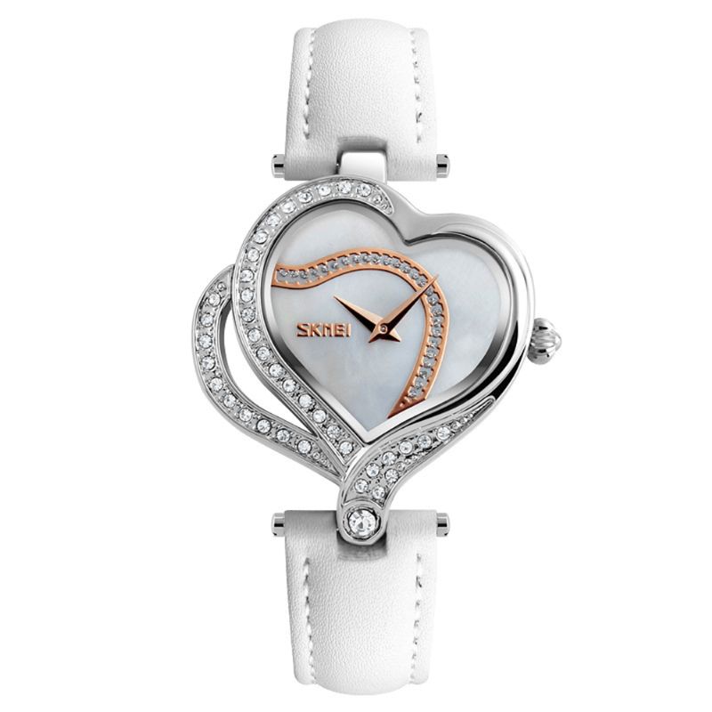 Skmei 9161 Sweet Love Fashion Style Dameklokker Crystal Leather Strap Kvartsklokke