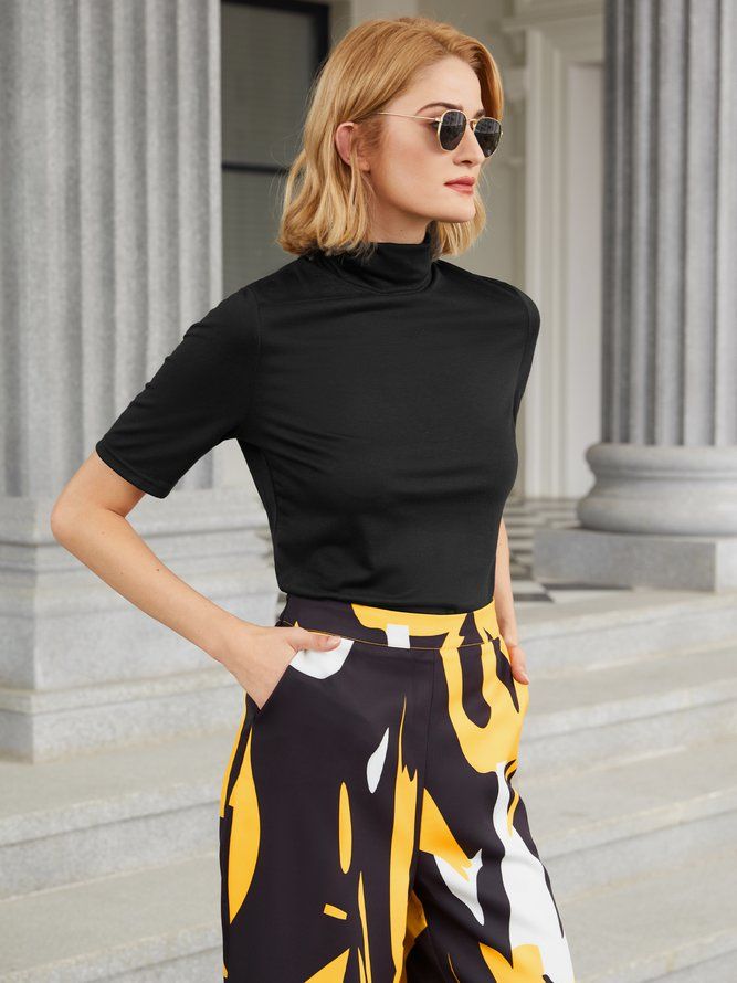 Spring Plain High Neck Slim Fit Lette Daglige Topper