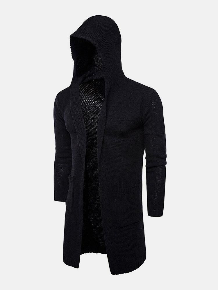 Strikkede Langermet Sidelomme Mellomlange Gensercardigans For Menn