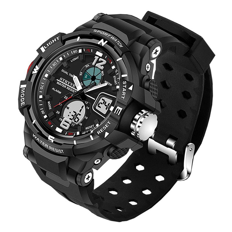 Stryve S8012 Chronograph Luminous Week Display Vanntett Menn Sport Dual Display Digital Watch