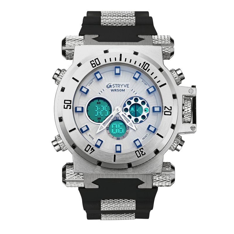 Stryve S8015 5Atm Swiss Movement Chrono Date Week Dual Display Digital Watch