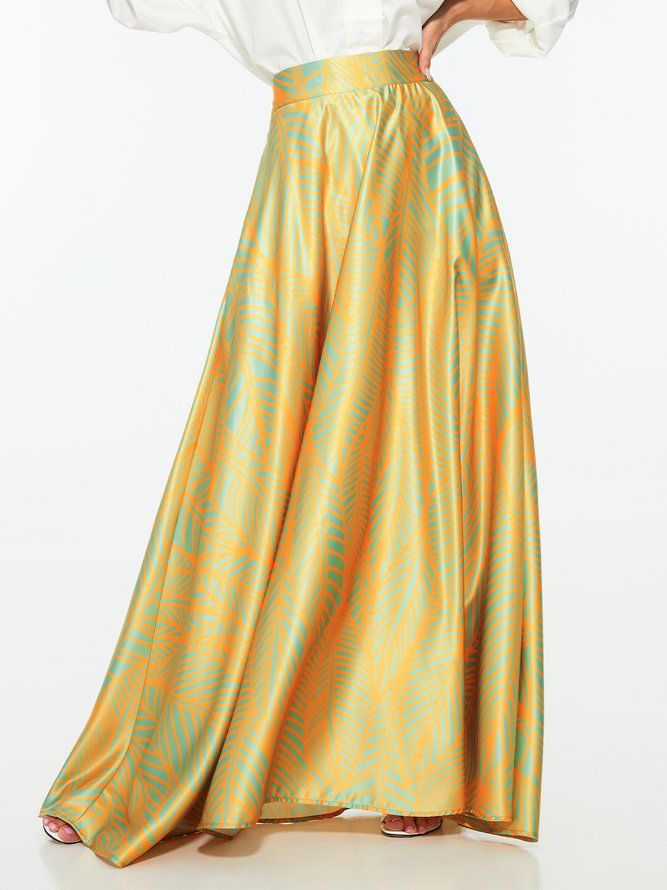 Summer Lightweight A Linea Elegant Leaves Long Glidelås Flueskjørt