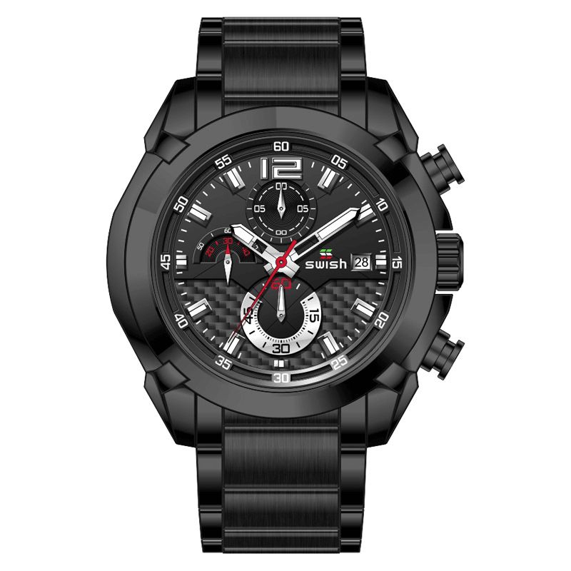 Swish 0106 Fashion Herreklokke 3Atm Vanntett Lysende Skjerm I Rustfritt Stål Kvartsklokke