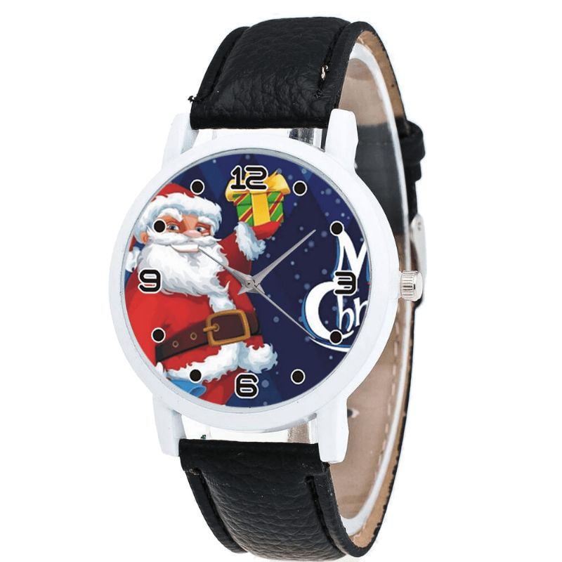 Tegneserie Julenissen Med Stjernehimmelmønster Pu-Skinnrem Barneklokke Mote Barnekvartsklokke