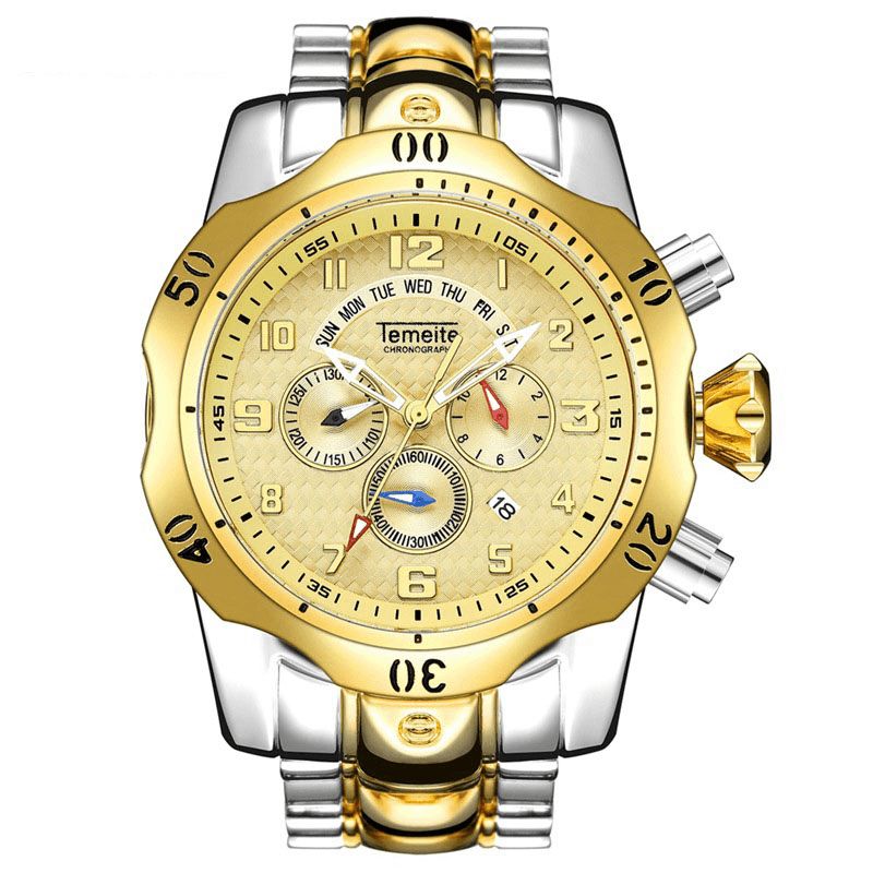 Temeite Large Dial Herre Business Watch Multifunksjonell Lysende Kalender Vanntett Kvartsklokke