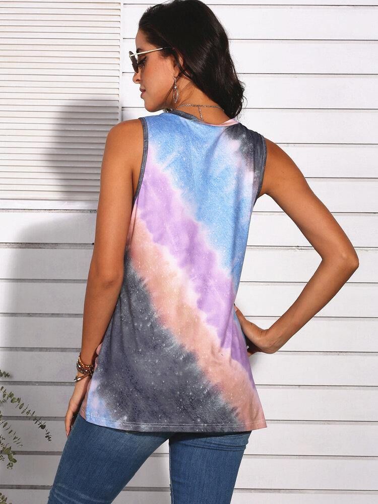 Tie-Dye Gradient Print Ermeløs O-Hals Casual Tank Tops For Dame