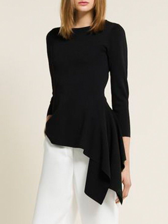 Tre Fjerdedels Mannskapshals Solid Skinny Lady Topp