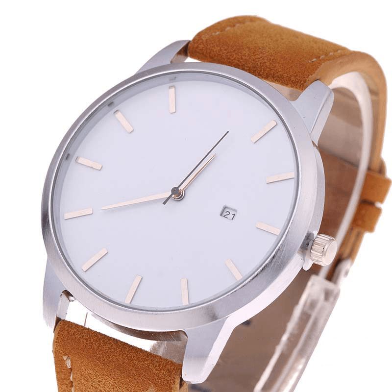 Uformell Mote Stor Urskive Med Kalender Matt Pu-Skinnrem Herrearmbåndsur Kvartsklokke
