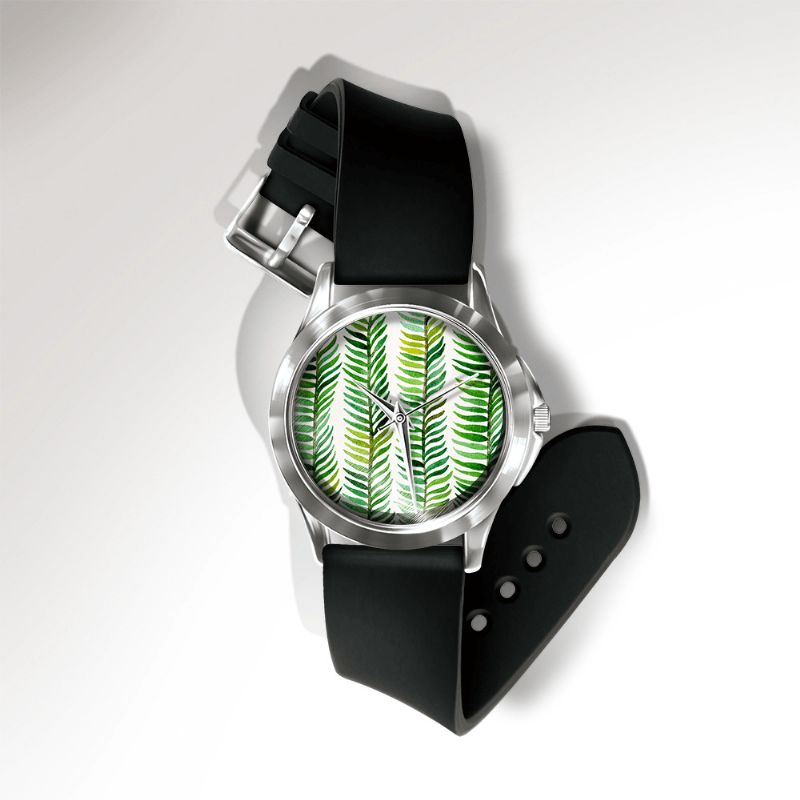 Uformelt Landskap Trykt Herreklokke Skogblader Blomstermønster Kvinner Kvartsklokke
