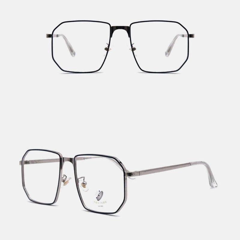 Unisex Polygonal Metal Full Frame Myopia Brilleinnfatning Anti-Blue Light Fashion Flat Briller