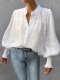 V-Hals Lanterne Erme Løs Vanlig Bluse