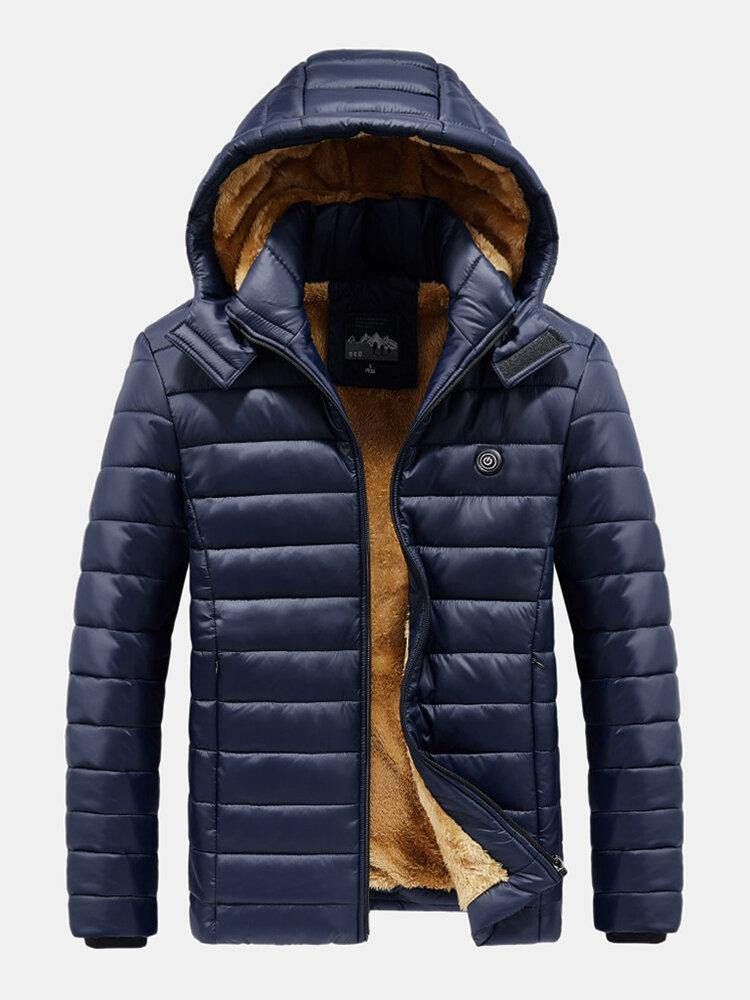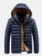 Vattert Plysjfôret Varm Bomullspolstret Hettejakke For Menn Med Lomme