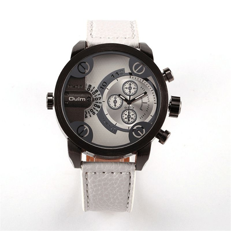 Vintage Herreklokke, Stor Urskive Med Dobbel Tidssone, Lærkvartsklokke
