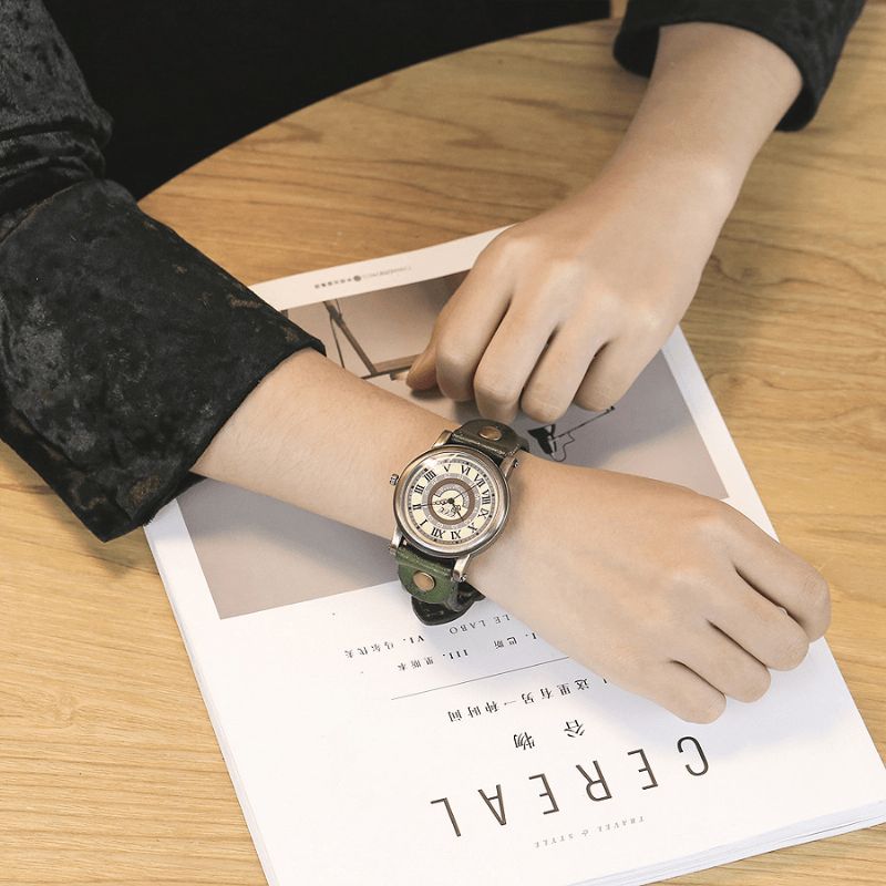 Vintage Platespiller Romertallskive Kuskinnsreim Kvinner Armbåndsur Kvartsklokke